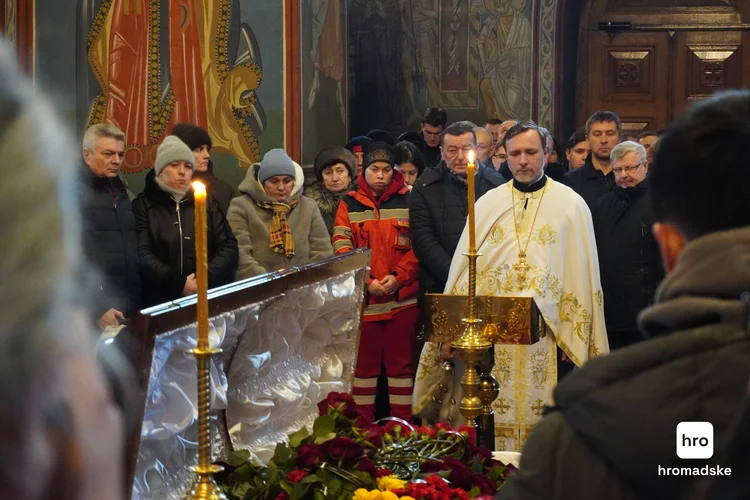 Прощание состоялось в Михайловском соборе. На церемонию пришли родные, друзья, коллеги и неравнодушные киевляне.