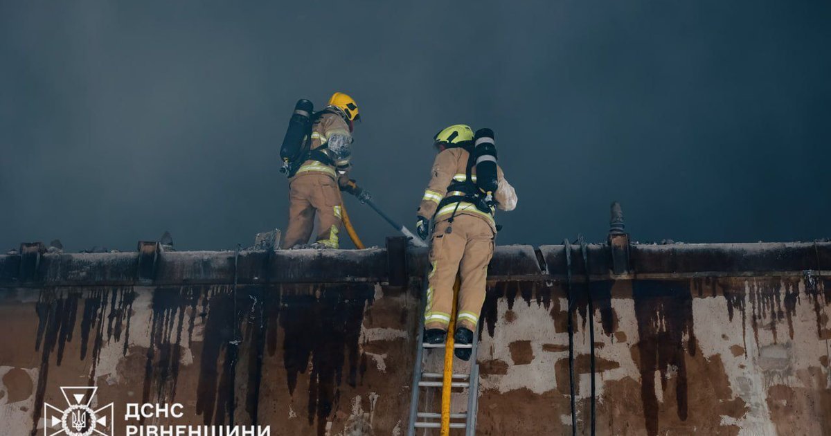 На Ривненщине потушили пожар после российского удара по объекту инфраструктуры. ФОТОРЕПОРТАЖ