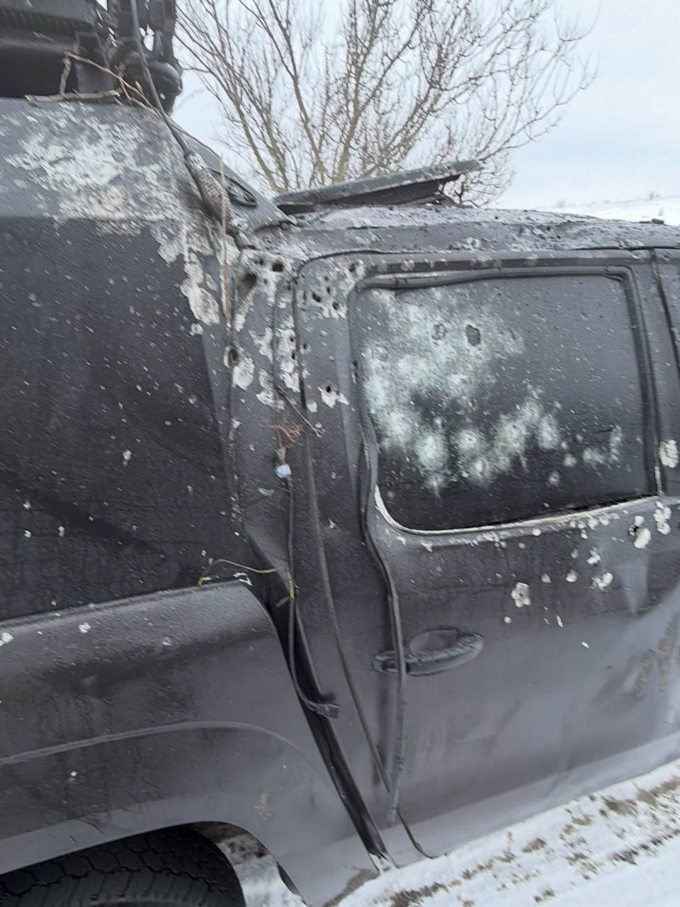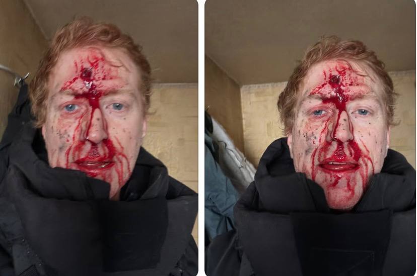 Он опубликовал фото своего окровавленного лица и изрешеченного осколками эвакуационного автомобиля.