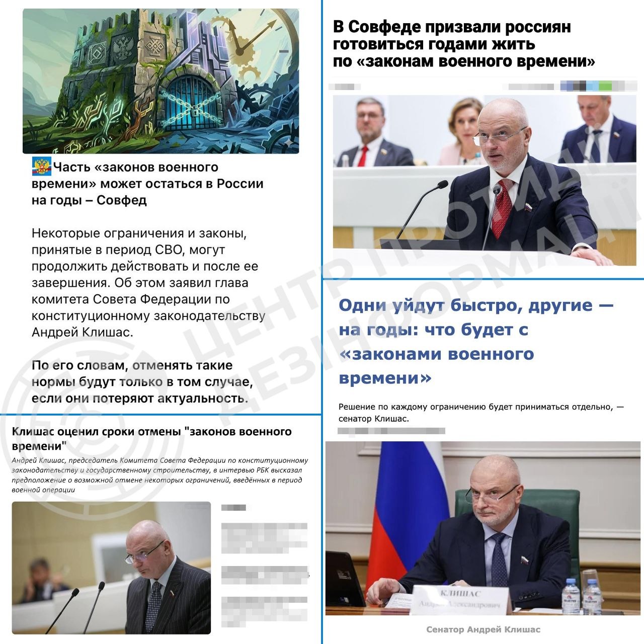 В Совете Федерации РФ предупредили россиян, что "законы военного времени" останутся в силе даже после окончания войны. По словам сенаторов, ограничения будут отменяться только в случае утраты "актуальности".