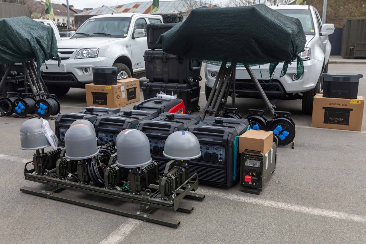 "Три комплекса "Ай-Петри" сегодня мы передаем на службу ребятам, которые лучше всех умеют с ними работать. Мы укомплектовали их дефицитным оборудованием: кроме новеньких пикапов, каждый идет со станциями РЭБ, генераторами и зарядными станциями", – объясняет Порошенко.
