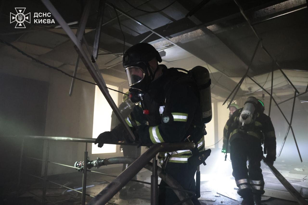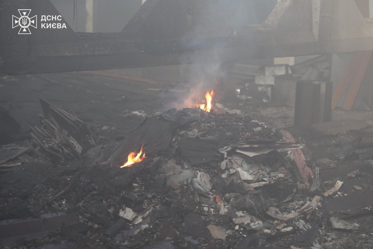Последствия атаки РФ на Киев: горело офисно-складское здание. ФОТОРЕПОРТАЖ