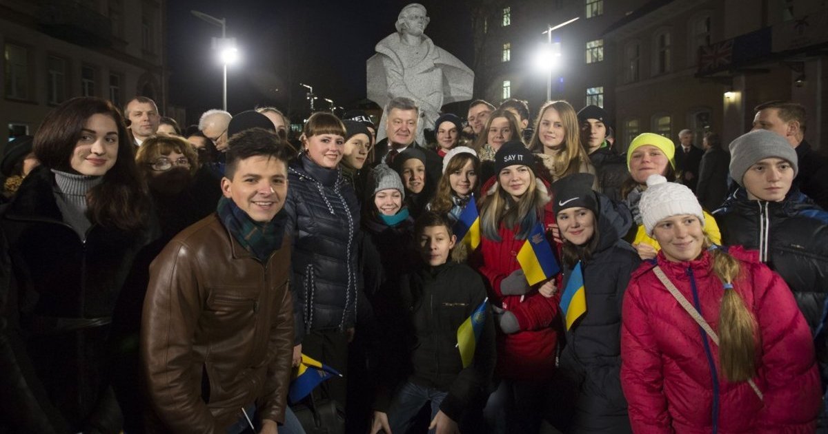 В рамках визита в Литовскую Республику Президент Украины Петр Порошенко встретился с украинской общиной Литвы. Встреча состоялась у памятника Тарасу Шевченко в Вильнюсе.