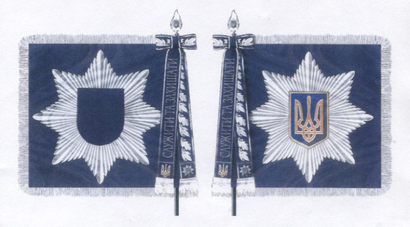 Флагом Национальной полиции Украины является прямоугольное полотнище синего цвета в центре которого размещена эмблема Национальной полиции Украины. Кроме того, этим указом утвержден образец служебного флага территориального органа, научно-исследовательского учреждения Национальной полиции Украины.