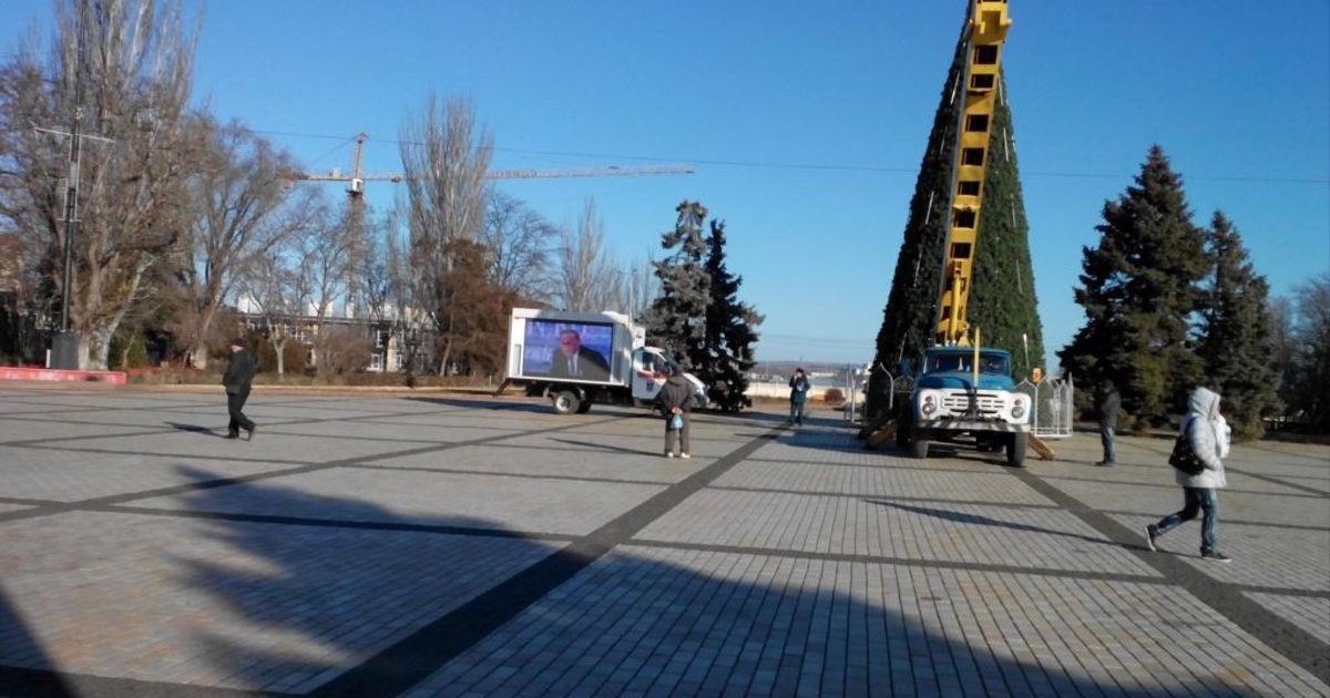 Об этом информирует Цензор.НЕТ со ссылкой на "Крым.Реалии".За происходящим на большом экране наблюдали преимущественно сотрудники МЧС, чья мобильная телестанция была задействована для показа, а также полиция, дежурившая на площади, и несколько дворников, убиравших сквер. Позже присоединились и сотрудники коммунальной службы, прибывшие украшать новогоднюю елку.