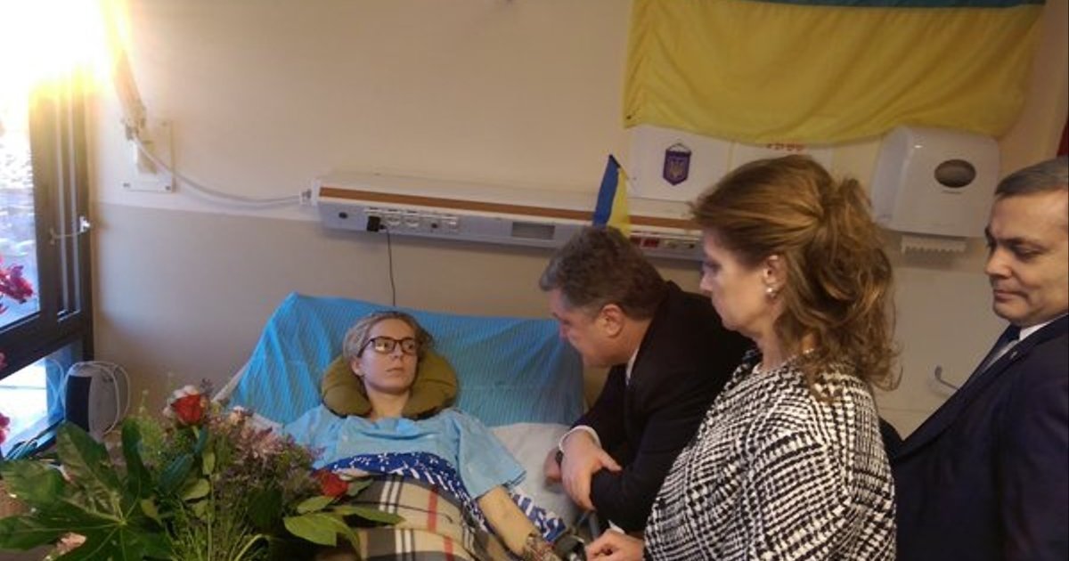 Президент Украины Петр Порошенко проведал в израильском госпитале руководителя медслужбы ДУК "Правый сектор" Яну Зинкевич, находящуюся там на лечении после ДТП.