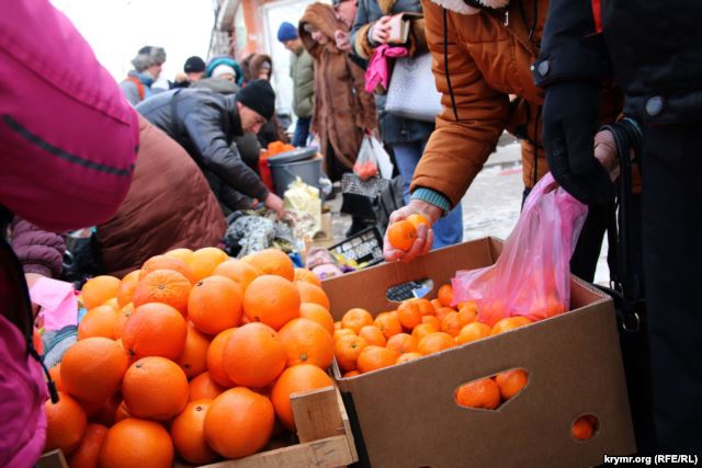 Помимо генераторов особенным спросом у горожан сейчас пользуются мандарины, которые продают по 75-110 российских рублей (25-35 грн).