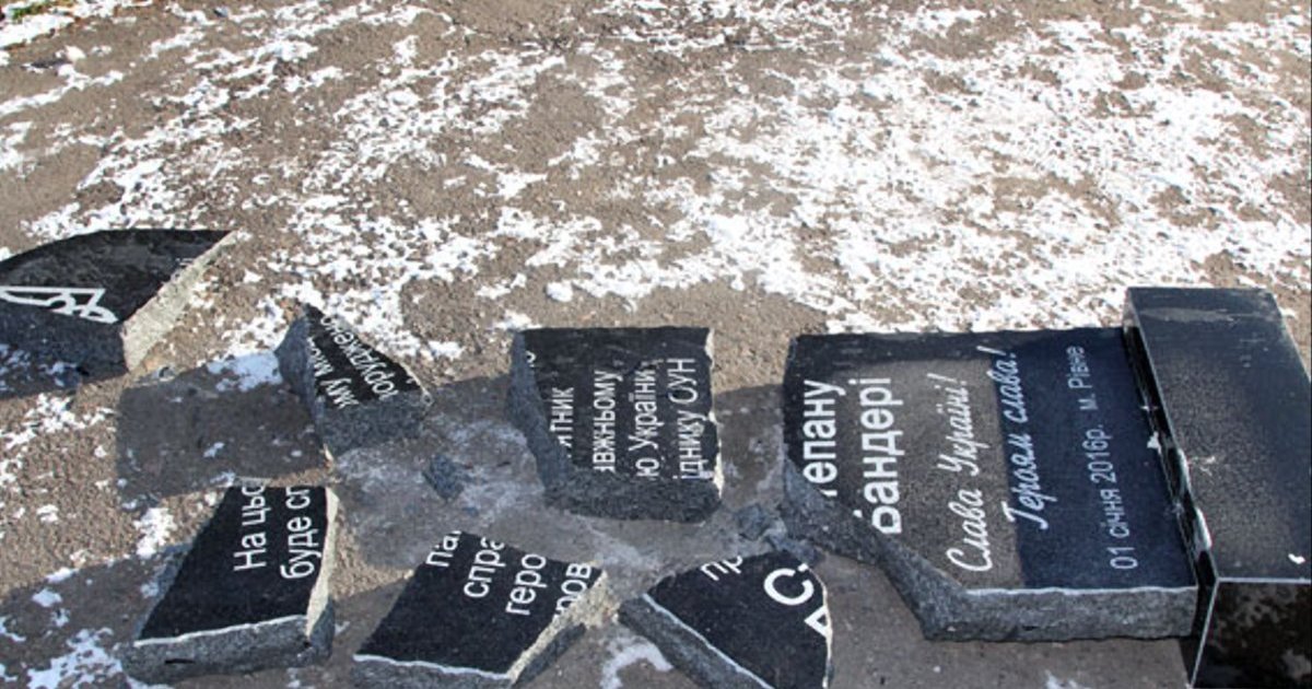 Мемориальную доску Бандере разбили в Ривном. ФОТО