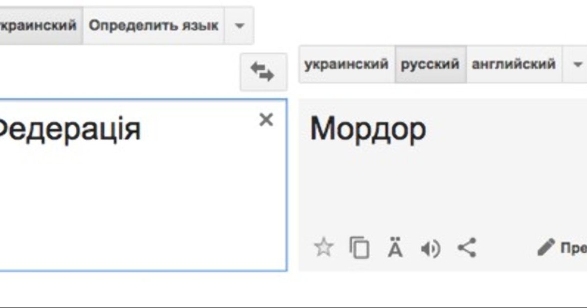 Российским пропагандистам из "Lifenews" и РИА "Новости" объяснили в компании Google, почему словосочетание "Російська Федерація" Google Translate перевёл с украинского языка на русский как "Мордор".