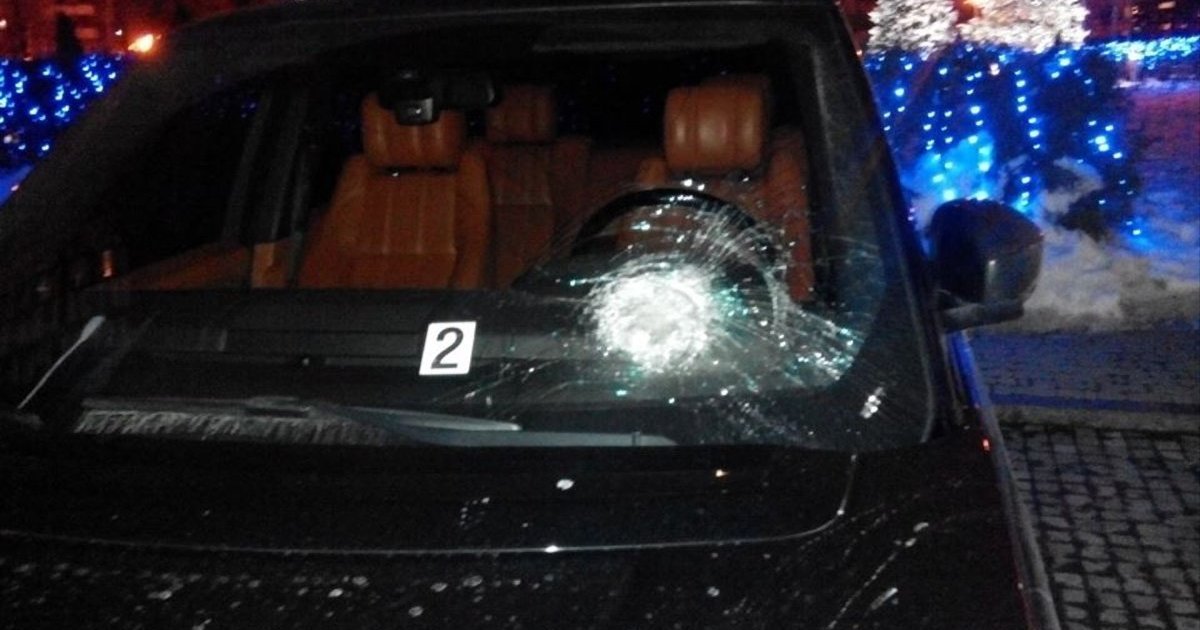 Неизвестные атаковали гирями автомобиль нардепа Рыбалки. ФОТОрепортаж