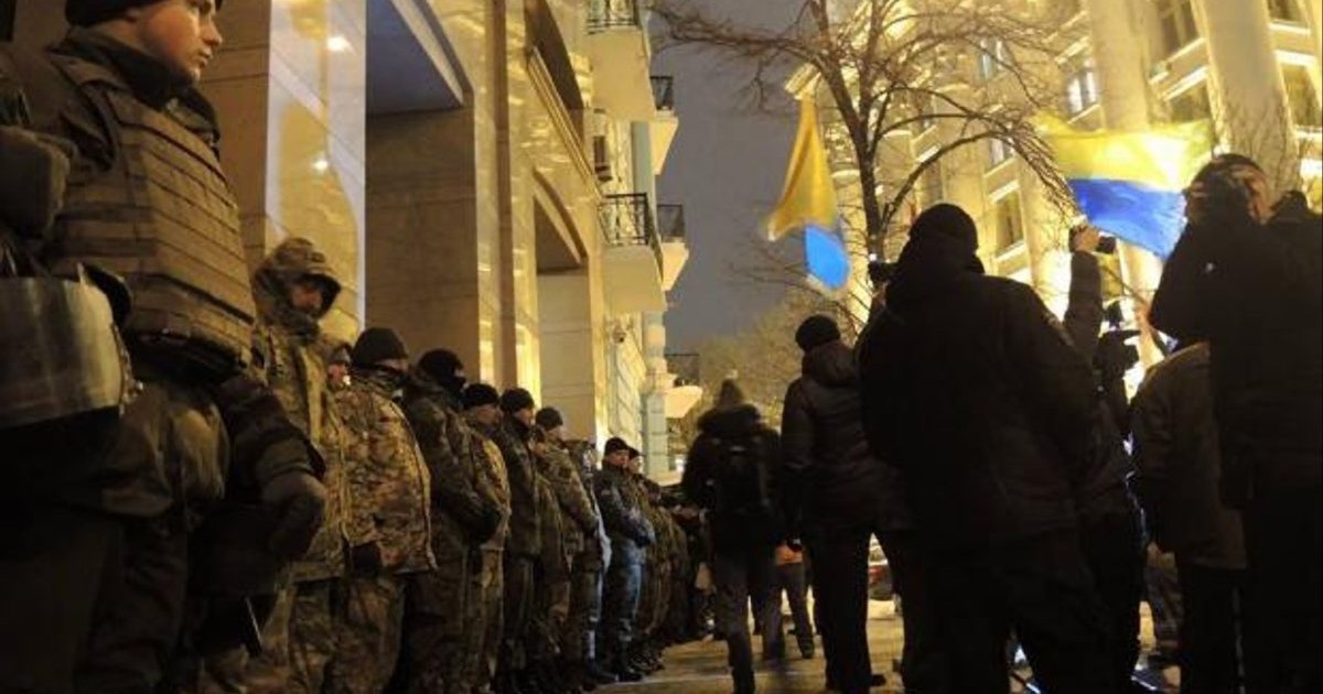 Люди подошли к офису бизнесмена Рината Ахметова, где провели небольшой митинг. Они выкрикивали лозунги в адрес бойцов Нацгвардии и силовиков, охраняющих здание. Столкновений между активистами и охранниками офиса СКМ замечено не было.