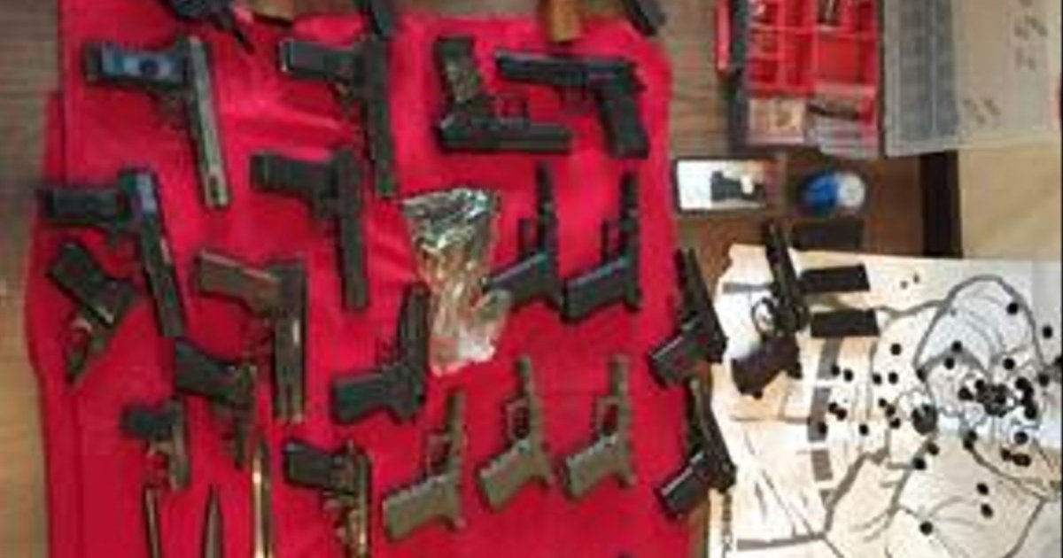 Во время обысков по месту жительства и работы злоумышленника правоохранители изъяли 5 пистолетов "Скорпион", 4 пистолета Макарова, 4 пистолета "ТТ", 3 пистолета "Беретта", 15 пистолетов "Глок-19", 8 пистолетов "Глок-17", 3 пистолета "Глок-19" цвета хаки, 1 пистолет "Вальтер Р-99", 1 пистолет "Вальтер Р-38", пистолет-пулемет "УЗИ", запчасти к нарезному огнестрельному оружию и большое количество холодного оружия.