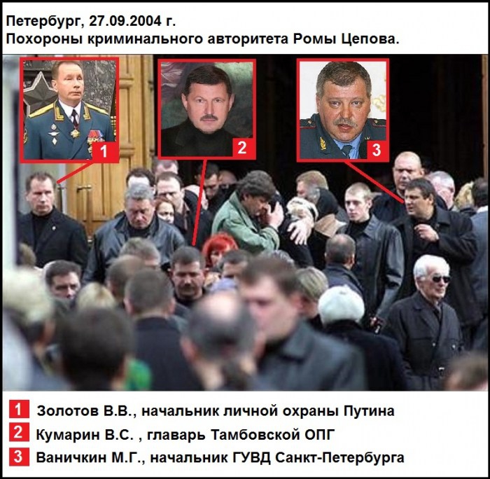 Нашел кому жаловаться на связи власти с криминалом! Кстати, офицером милиции был и сам Рома Цепов. Да-да. Купил себе корочку полковника ГУБОПа еще в 90-х. Откуда и салют на кладбище. Ну а что удивительного: именно в Питере тогда родилось понятие "полосатая крыша", т.е. совместные ОПГ из бандитов, ментов и чекистов. И над Кремлем теперь тоже полосатая крыша. Суд по делу Литвиненко показал, что покойного убили за то, что он расследовал, как Путин крышевал тамбовских, когда они гнали кокаин через питерский порт.