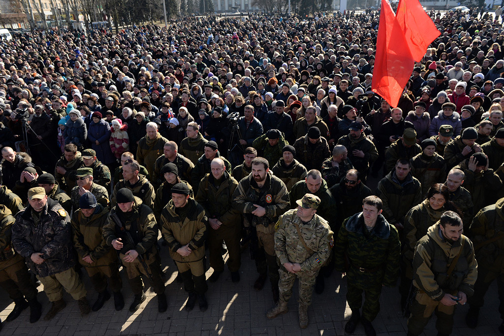 Это, я так понимаю, штурмовая группа, увидев прессу, почти все закрывают лица масками. Говор вроде российский, да и не похожи они на отчаявшихся шахтеров, но голову на отсечение не дам. Да и вообще они не особо разговорчивые оказались.