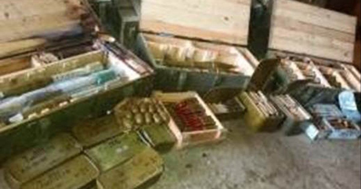 В сообщении отмечается: "Из тайника, который был расположен вблизи поселка Прудовка, правоохранители изъяли 10 гранат Ф-1 и РГД-5, 16 выстрелов ОГ-9М с пороховыми зарядами до станкового противотанкового гранатомета, 132 выстрела ВОГ-17М к автоматическому гранатомету, большое количество патронов различного калибра.