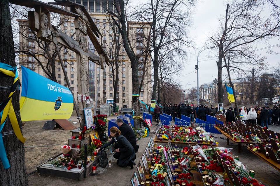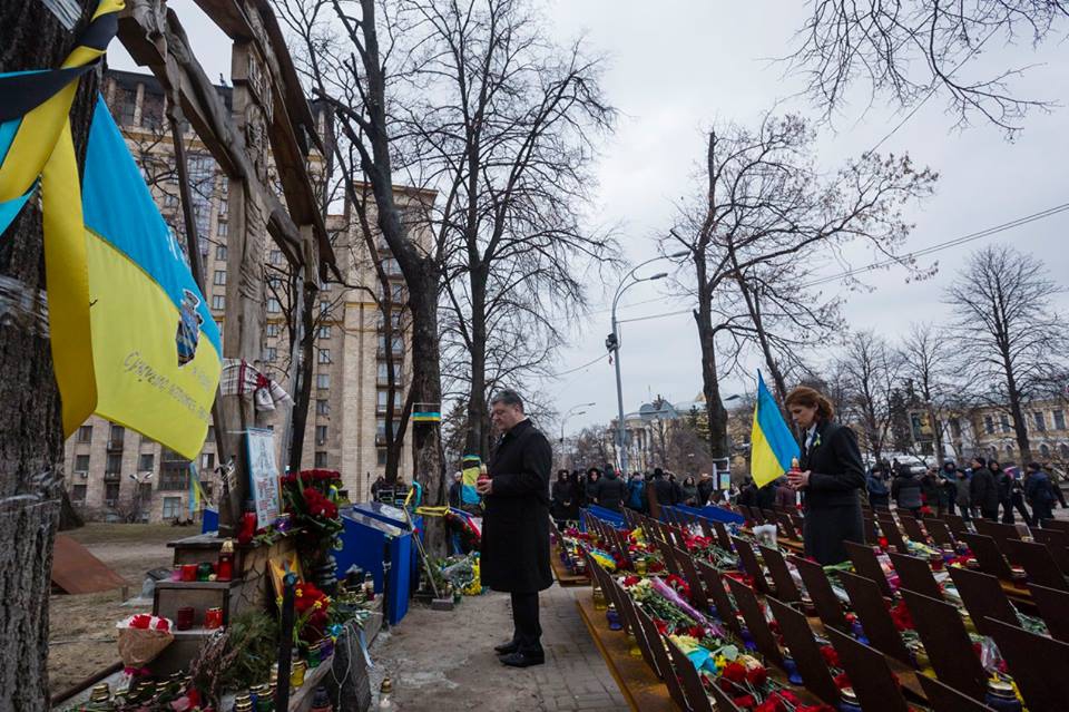 Во вторую годовщину расстрела активистов Майдана на улице Институтской президент Украины Петр Порошенко вместе с супругой Мариной почтили память погибших героев Небесной Сотни.
