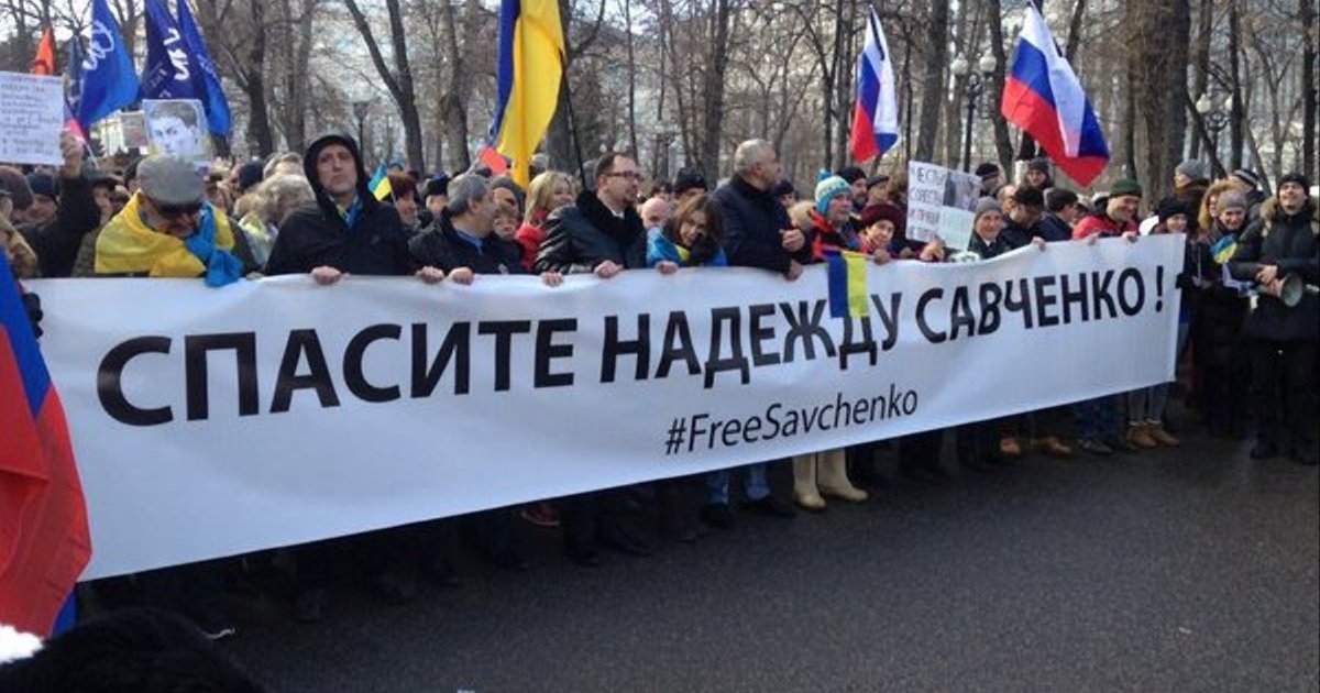 Активисты, требовавшие освобождения украинской летчицы Надежды Савченко, начали шествие в Москве.