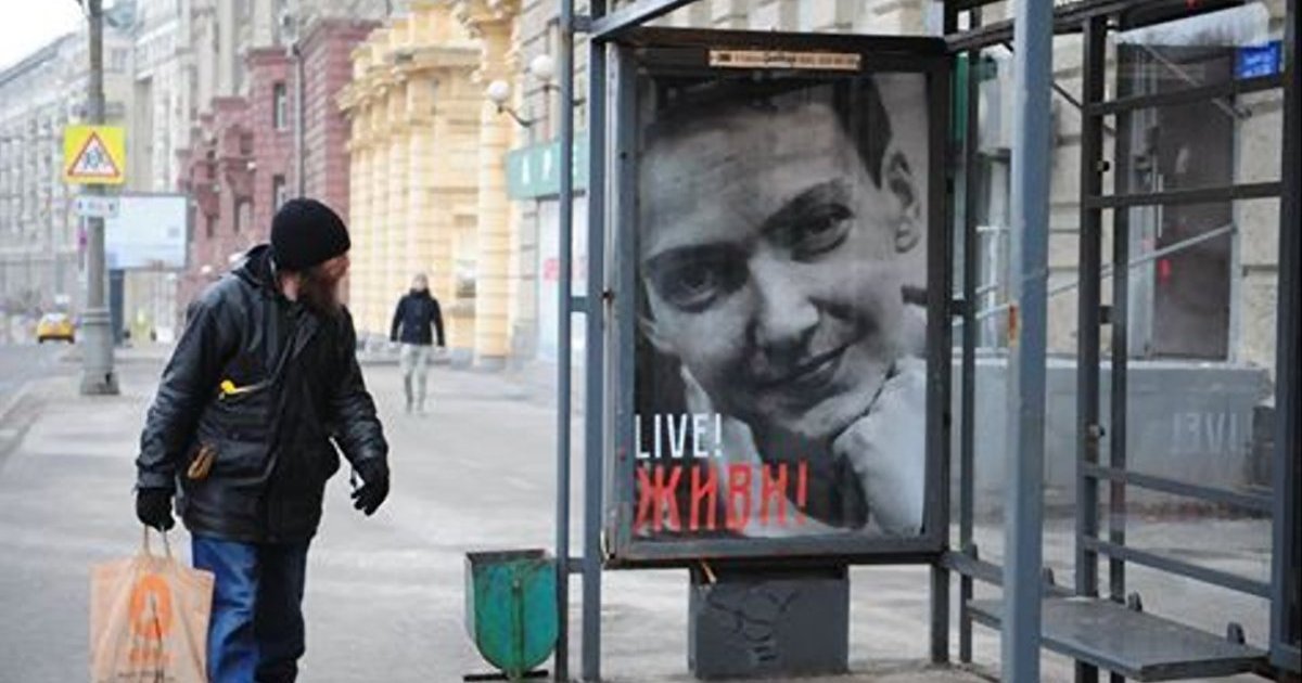 В Москве 8 марта установили ситилайт с изображением народного депутата Украины Надежды Савченко, которую Кремль удерживает в заложниках.
