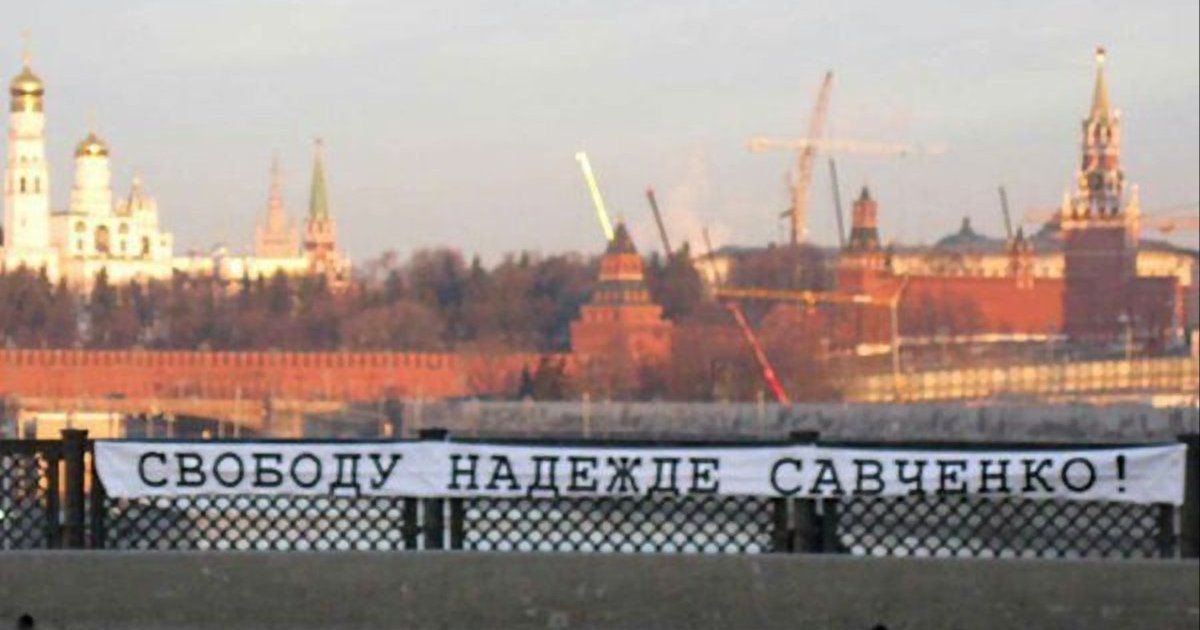 В Москве, на фоне Кремля, повесили плакат с надписью "Свободу Надежде Савченко!"