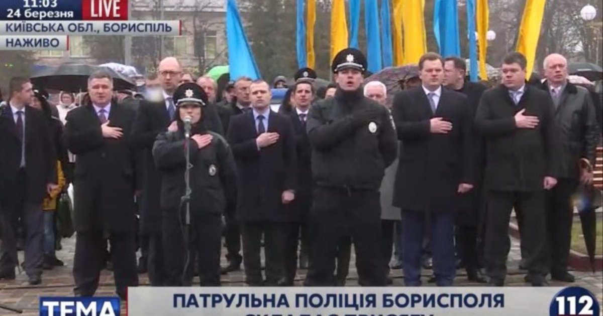 Сегодня, 24 марта, приняли присягу патрульные полицейские Борисполя. На торжественной церемонии присутствовали премьер-министр Украины Арсений Яценюк, глава МВД Арсен Аваков, глава Нацполиции Хатия Деканоидзе, ее заместитель Александр Фацевич.
