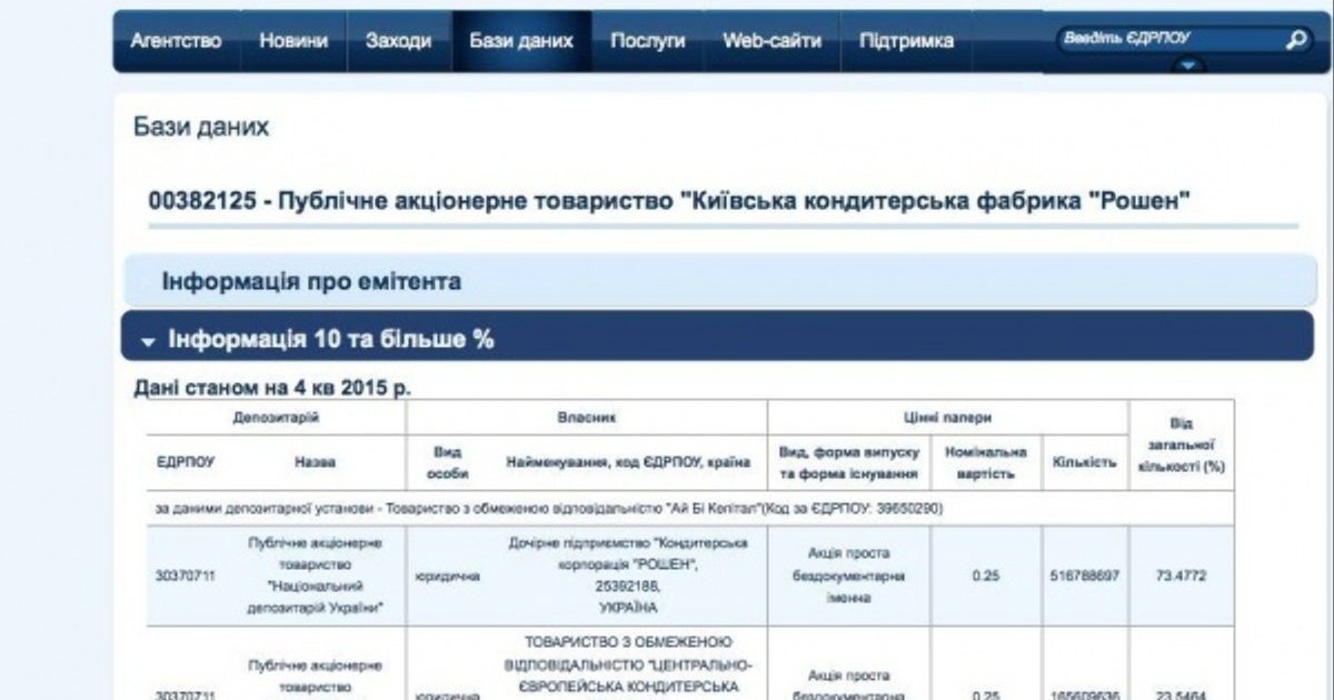 Дочернее предприятие "Кондитерская корпорация "Рошен" на 100% также принадлежит ООО "Центрально-европейская кондитерская компания". ООО "Центрально-европейская кондитерская компания" на 85% принадлежит нидерландской ROSHEN EUROPE B.V, конечным бенифициаром которой указан президент Украины Петр Порошенко. Убедится в этом можно легко, нужно ввести коды украинских предприятий в открытый реестр Минюста и вы сами увидите эту информацию", - сообщает юрист.