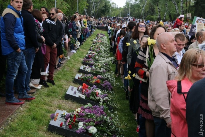 Торжественные мероприятия также прошли на Аллее Славы в Одессе, сообщает "Думская". По разным подсчетам, отдать дань памяти погибших во Второй мировой войне пришло более пяти тысяч человек.