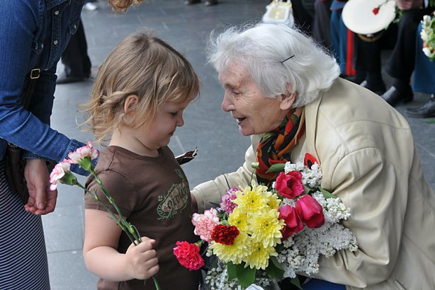 Взрослые и дети, депутаты и пенсионеры, а также большое количество личного состава днепропетровской полиции возложили цветы к памятнику и поздравили с праздником ветеранов, а вместе с ними и всех тех, кто восстанавливал страну после войны.