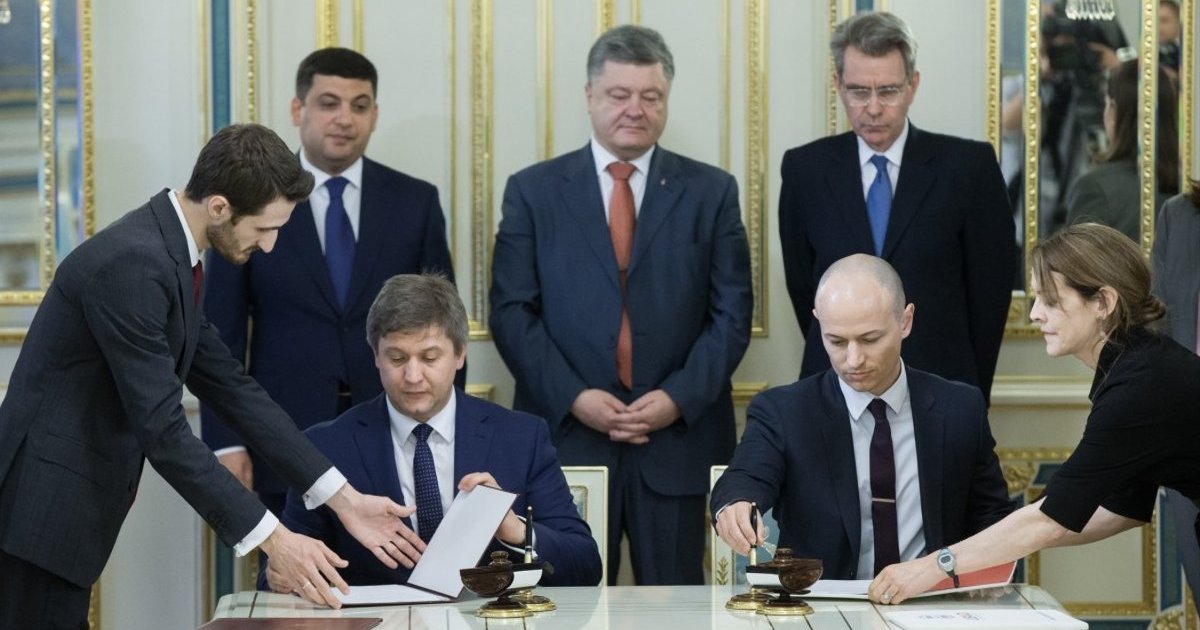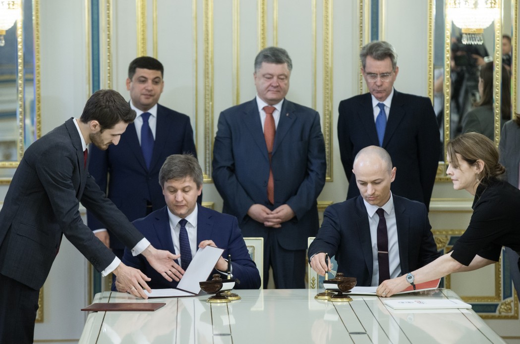 В присутствии Президента Петра Порошенко состоялось подписание Декларации о намерениях и Соглашения о гарантиях заимствования между Украиной и Соединенными Штатами Америки.