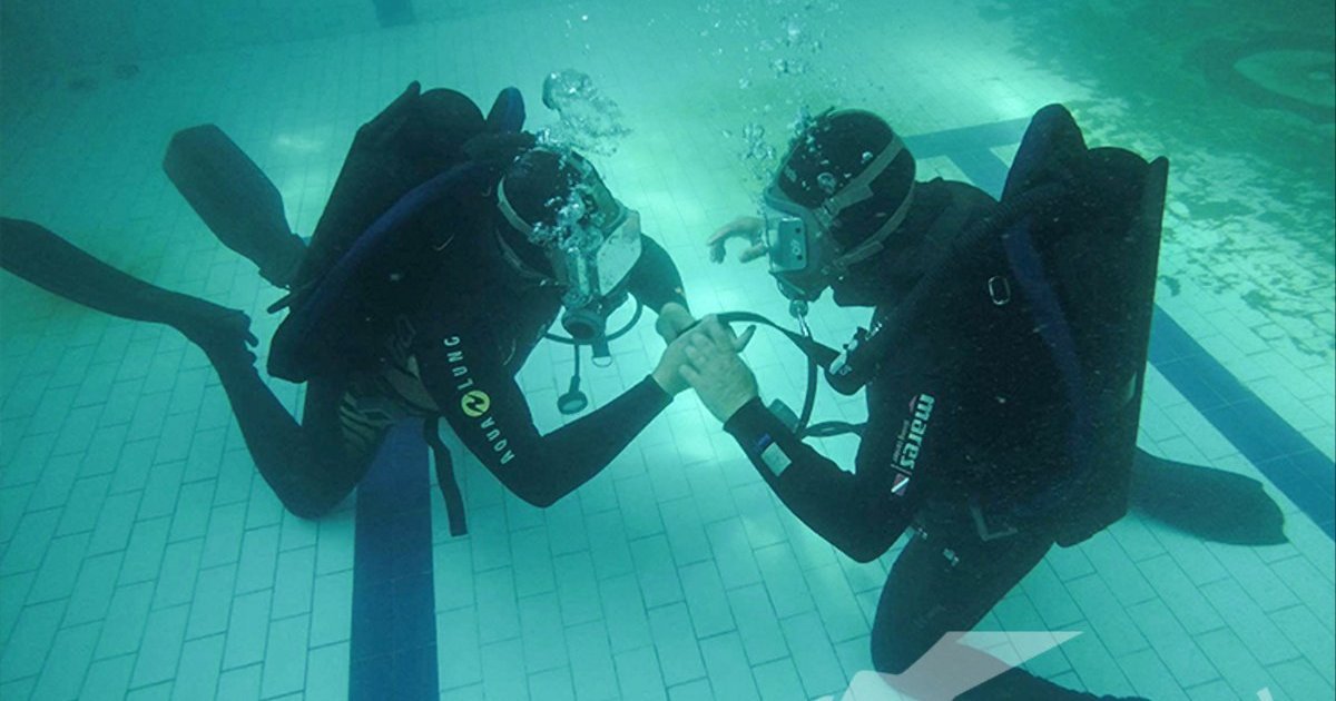 Во-первых, они испытали новое снаряжение Draeger в котором они будут работать в дальнейшем и обучать ребят. Также, в бассейне отработали упражнения на поведение в стрессовых ситуациях и владение снаряжением. Разработали специальные упражнения для работы вслепую. Поскольку видимость в Азовском море всего 20-30 сантиметров, вода очень мутная, - отметили они.