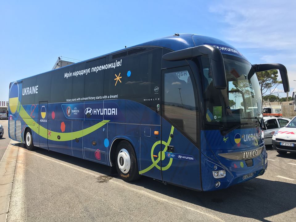 Збірну України у містечку Екс-ен-Прованс зустріли українськими прапорами, працівники готелю, у якому житиме команда, навіть влаштували живий жовто-блакитний коридор.