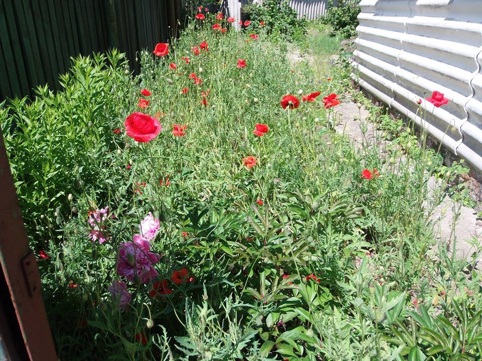 На фото люди держали мак, разросшийся самосевом, на приусадебных участках...