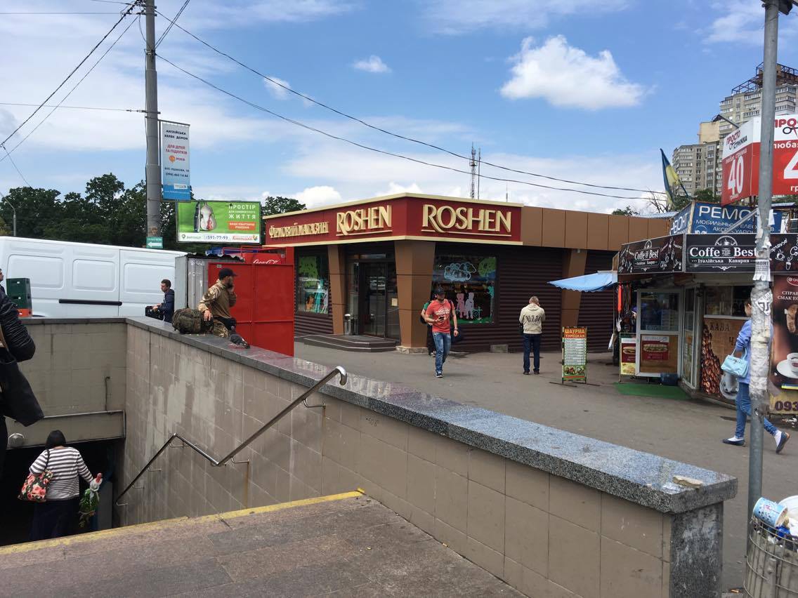 Рядом с киосками, которые сносят, находится и магазин "Рошен". Журналист "Цензор.НЕТ" спрашивает у представителя фирмы, будет ли снесен и этот МАФ. "Да, он в списке есть", - отвечает мужчина.