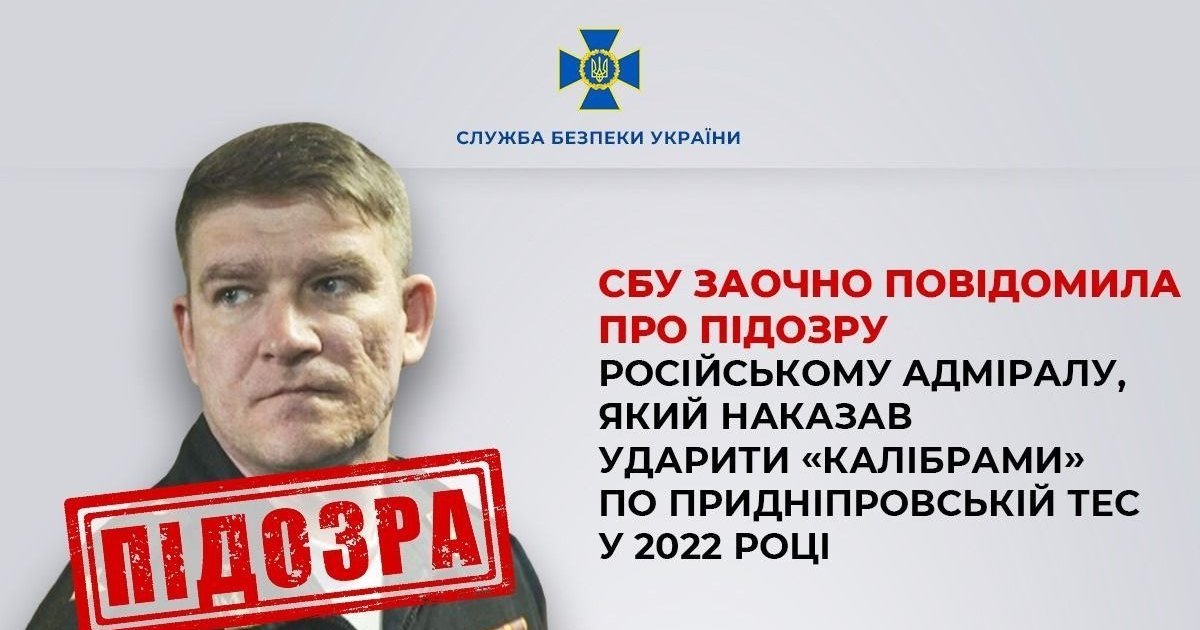 Сообщено о подозрении российскому адмиралу Кузьмину, который отдал приказ нанести удар "Калибрами" по Приднепровской ТЭС, - СБУ. ФОТО