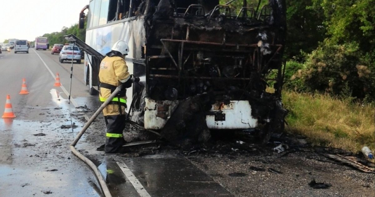 По предварительной версии, воспламенение произошло в моторном отсеке автобуса.
