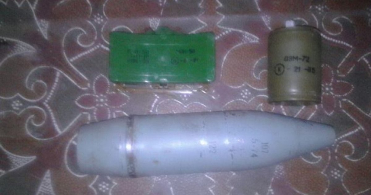 Сотрудники Службы безопасности Украины обнаружили тайник с осколочно-фугасными боеприпасами неподалеку от Широкино (Донецкая обл.), передает Цензор НЕТ со ссылкой на пресс-службу СБУ на странице в Facebook.В тайнике был спрятан осколочно-фугасный снаряд калибром 122 мм, противопехотная мина МОН-50 и осколочная противопехотная мина ОЗМ-72.