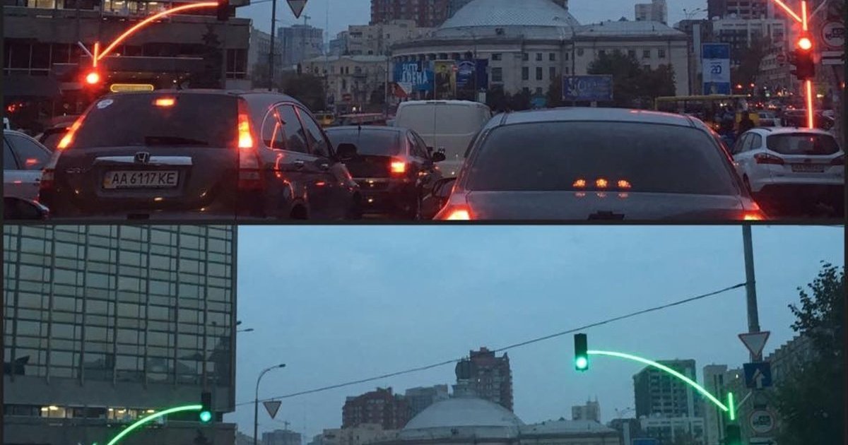 Об этом на своей странице в Фейсбук сообщил заместитель главы КГГА Илья Сагайдак, передает Цензор.НЕТ.Экспериментальная конструкция позволяет видеть сигналы светофора на большом расстоянии: изогнутая вертикальная опора подсвечивается тем же цветом, который показывает обычный светофор.