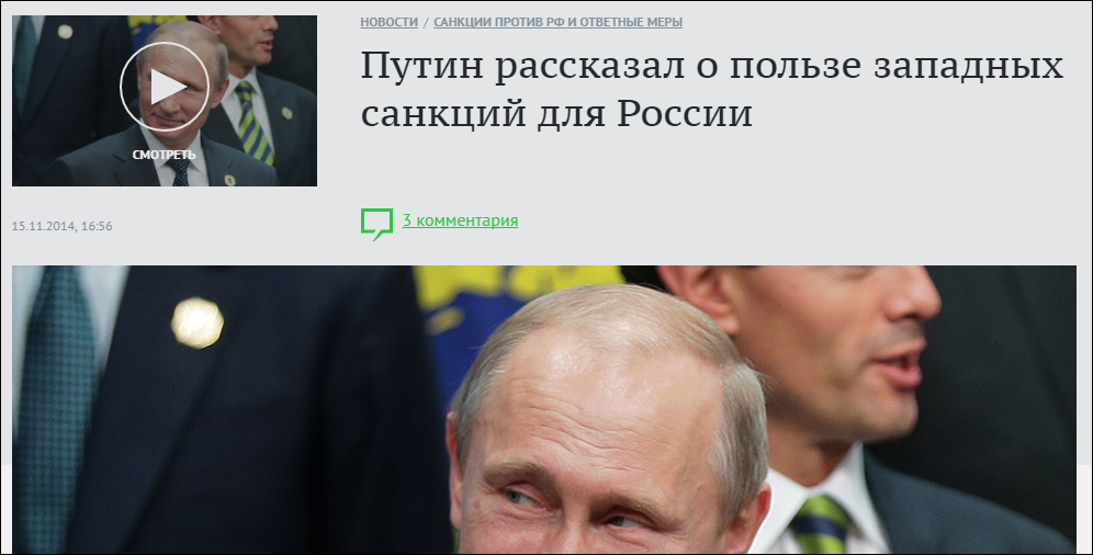 Как сообщает Цензор.НЕТ, подборку он опубликовал на своем сайте.Он напомнил, что на днях президент РФ Владимир Путин внес в Госдуму законопроект, согласно которому Россия возобновит действие российско-американских договоренностей по утилизации плутония при условии отмены всех санкций, введенных США в отношении отдельных субъектов РФ, российских юридических и физических лиц. "Путин предложил США компенсировать России ущерб от антироссийский санкций и "вынужденных" российских контрсанкций. Что?! Погодите... Ущерб от санкций и, простите, контрсанкций?! Два года Путин говорил, что санкции идут нам на пользу, а теперь ущерб оказался...", - пишет блогер.