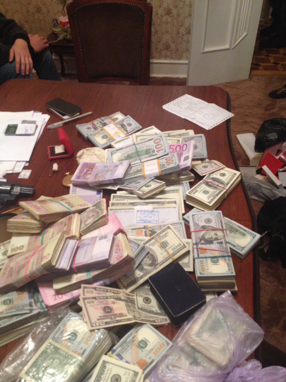 В результате проведенных мероприятий были обнаружены и изъяты черновые записи и служебные записки о выдаче денежных средств, расходные накладные, наличные, в том числе для выплаты зарплаты "в конвертах" в сумме почти 11,5 миллиона гривен в национальной и иностранной валюте, продукция предприятия и сырье для ее изготовления.