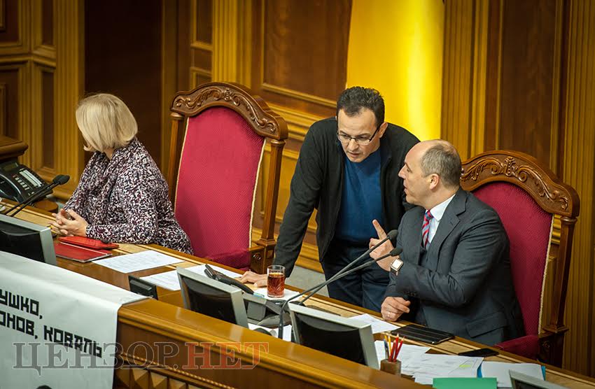 Глава фракции "Самопомочи" Березюк что-то выяснял у спикера Парубия.