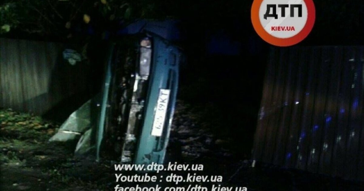 Легковушка влетела в забор и перевернулась на окраине Киева. ФОТО