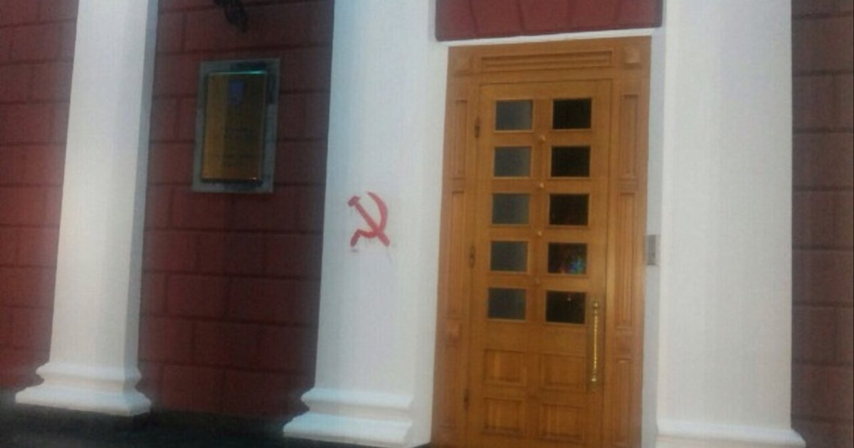 На входе в Одесский горсовет нарисовали серп и молот. ФОТО
