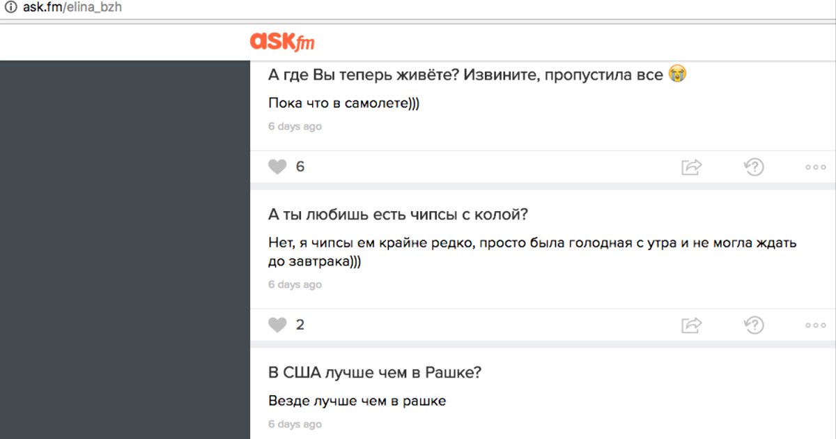 Как сообщает Цензор.НЕТ со ссылкой на Life, 22-летняя студентка МГИМО поделилась с подписчиками впечатлениями о путешествии по США. На вопрос подписчика "В США лучше, чем в Рашке?" Элина ответила: "Везде лучше, чем в Рашке". При этом девушка призналась, что "при одной мысли о Москве" ей "становится дурно".Отец Элины - Муса Бажаев - владеет "Группой Альянс" и 40% акций компании "Русская платина". В мае он отпраздновал свой 50-летний юбилей на 250 миллионов рублей в спорткомплексе "Олимпийский".