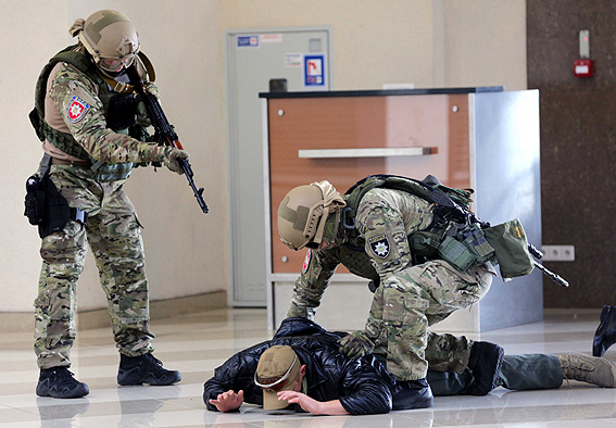 В четверг, 3 ноября, подразделение особого назначения Национальной полиции Украины КОРД и мобильное пограничное подразделение "Дозор" во время финальной фазы совместных учений провели учебную спецоперацию в терминале "F" Международного аэропорта "Борисполь".