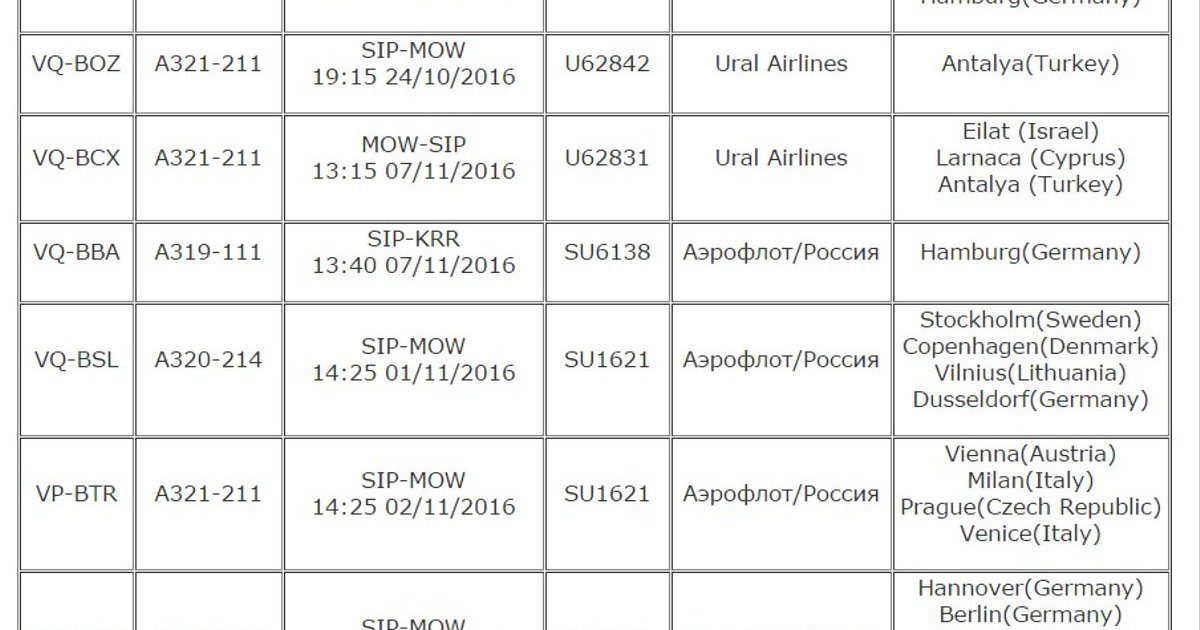 Воздушные суда, которые регулярно осуществляют незаконные рейсы в аэропорт Симферополь, перевозят пассажиров также в Норвегию, Италию, Германию, Данию, Грецию, Австрию и другие страны ЕС.
