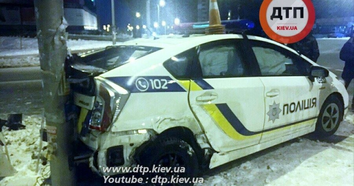 Патрульный автомобиль столкнулся с легковушкой в Киеве. ФОТОрепортаж