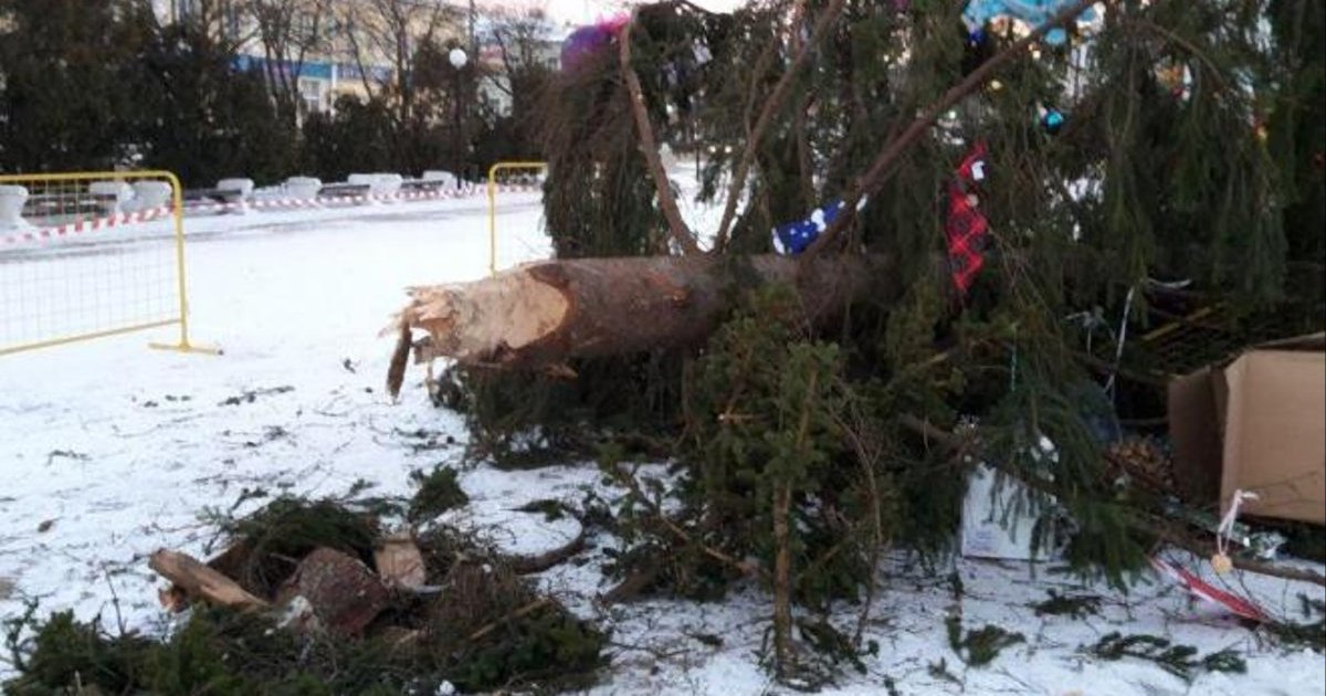 Среди бела дня на людной площади Переяслава-Хмельницкого упала главная елка. ФОТО