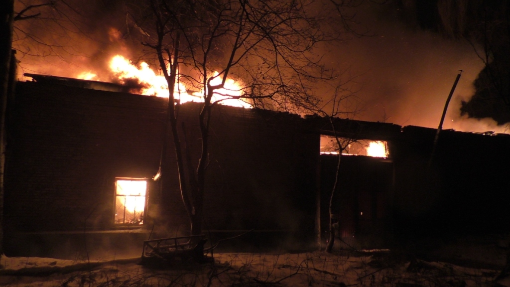 Огнем уничтожена крыша цеха на площади 1000 кв. м, 4 станка для изготовления мебели и материалы (древесностружечная плита).