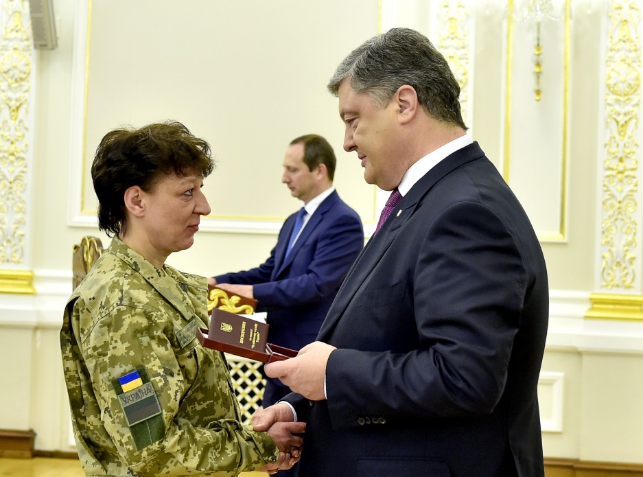 Накануне Международного женского дня Президент Петр Порошенко наградил выдающихся украинок: военнослужащих Вооруженных Сил по контракту, волонтеров, представительниц искусства и культуры, выдающихся врачей, учителей и ученых.