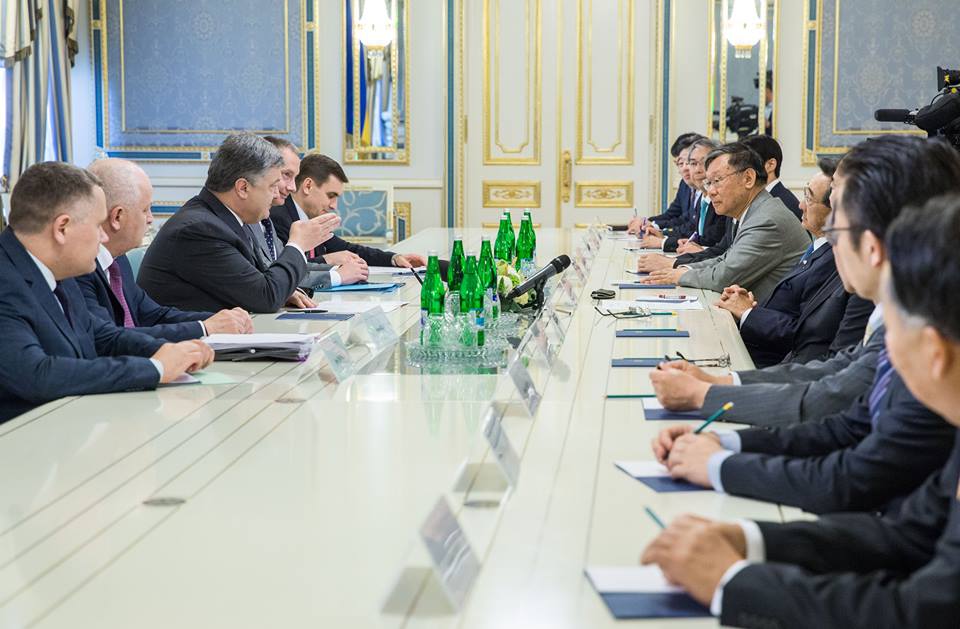 Президент Украины Петр Порошенко провел встречу с делегацией Комитета по деловому сотрудничеству с Украиной Японской федерации бизнеса "Кейданрен".