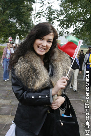На второй фотографии симпатичная девчонка с флажком Украины (рядом кажись молдаванка, хотя могу ошибиться...мать моя -женщина... далее без комментариев). Справа какая-то мохнорылая блондинка.